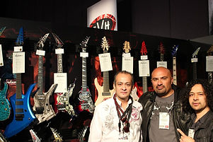 En este ámbito, destaca su colaboración con el Master Builder Pablo Santana. Durante varios años, trabajaron de la mano para el NAMM Show en Anaheim, donde Santana construía manualmente las guitarras y Mauricio se encargaba de darles vida a través de la pintura. Asimismo, tuvo el honor de intervenir instrumentos para figuras icónicas como Eddie Van Halen, Corey Feldman, Jhon Five, César "Vampiro" López y Whitechapel.